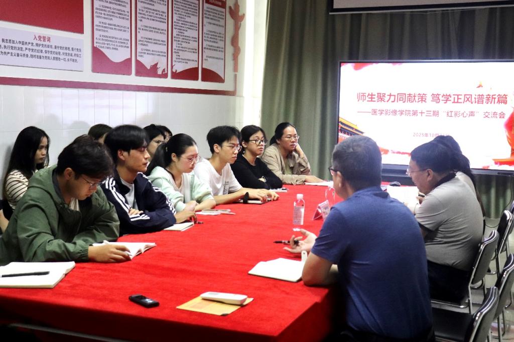 为扎实推进医学影像学院教风学风建设,营造良好育人生态,10月22日下午,医学影像学院在百城校区6栋607党员活动室召开第十三期“红影心声”师生面对面座谈会。学校党委常委、副校长王俊利教授莅临指导,学院领导班子成员、教学管理人员、辅导员及各班级学习委员共同参会。