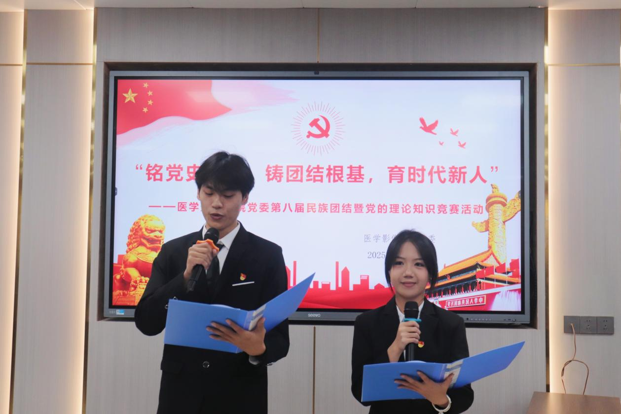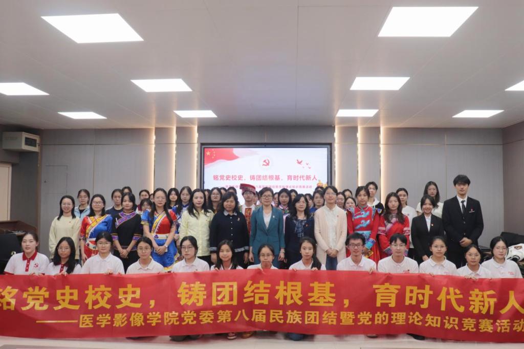 为深入学习贯彻习近平新时代中国特色社会主义思想、党的二十大精神及二十届历次全会精神,扎实推进铸牢中华民族共同体意识教育,11月14日下午,医学影像学院党委在百城校区护理学院211教室举办“铭党史校史,铸团结根基,育时代新人”第八届民族团结暨党的理论知识竞赛活动。学院党委书记李丹、党委副书记黄春苗、党委专职组织员林晓媚及各党支部书记出席现场指导,由党支部党员、发展对象、入党积极分子和入党申请人组成的多支参赛队伍同台竞技,现场气氛热烈高涨。