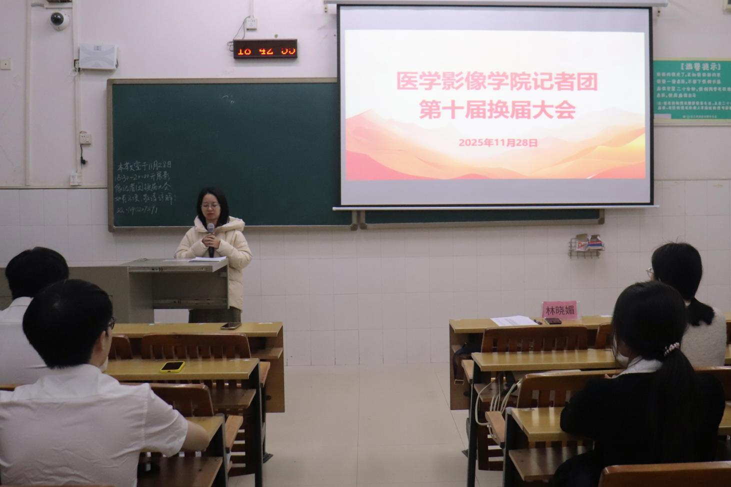 为推动团队建设薪火相传,打造高素质学生宣传队伍,充分发挥宣传工作思想引领、文化传播的重要作用,11月28日晚,学院记者团第十届换届大会在百城校区6栋304教室隆重举行。学院记者团指导老师林晓媚、各学生组织代表及记者团全体成员齐聚现场,共同见证这一时刻。大会由杨宇贤同学主持。