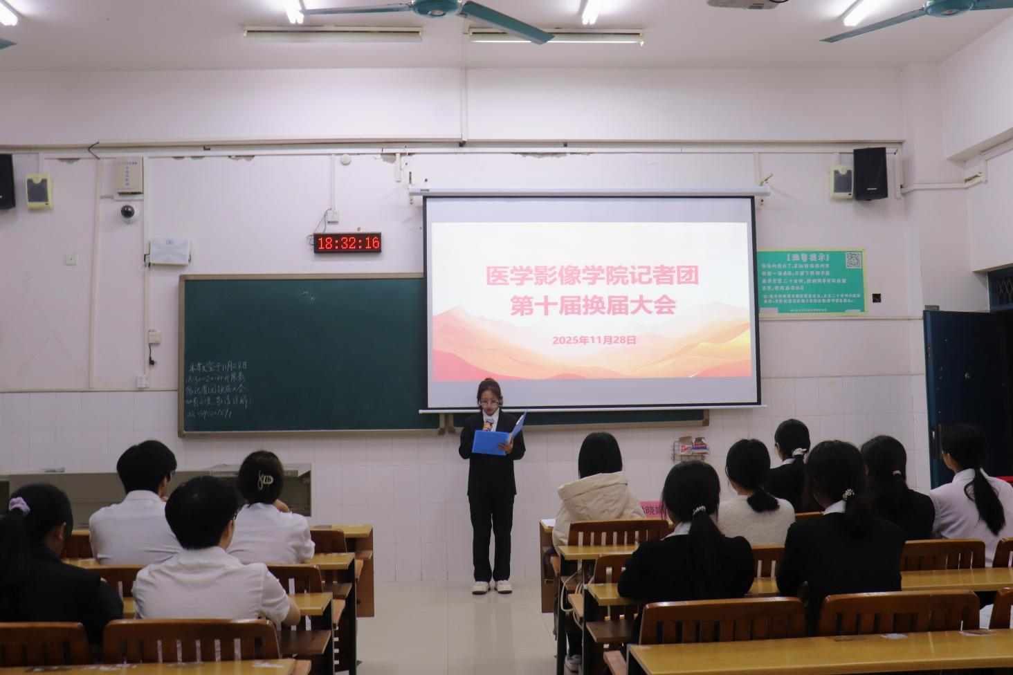 大会伊始,主持人详细介绍了换届大会的核心宗旨——表彰第九届成员的突出贡献,吸纳新鲜血液充实团队力量,进一步强化记者团作为学院宣传阵地的功能定位,着力打造具有学院特色、富有传播力的宣传团队。
