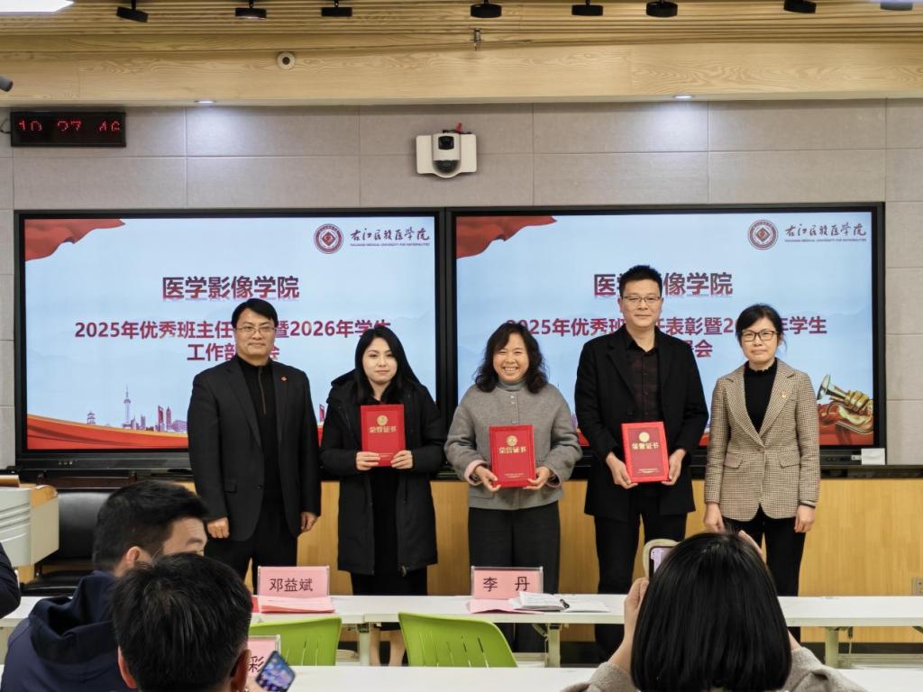 沙龙在庄重的先进表彰环节中拉开序幕。邓益斌院长宣读《医学影像学院关于表彰2025年度优秀班主任的决定》,对在过去一年中深耕育人一线、成效显著的优秀班主任予以表彰。随后,李丹书记与邓益斌院长共同为优秀班主任代表颁发荣誉证书。此次表彰既是对获奖班主任育人工作的肯定与嘉奖,更激励着全体育人工作者以先进为标杆,见贤思齐、砥砺前行,凝聚起比学赶超的浓厚育人氛围。