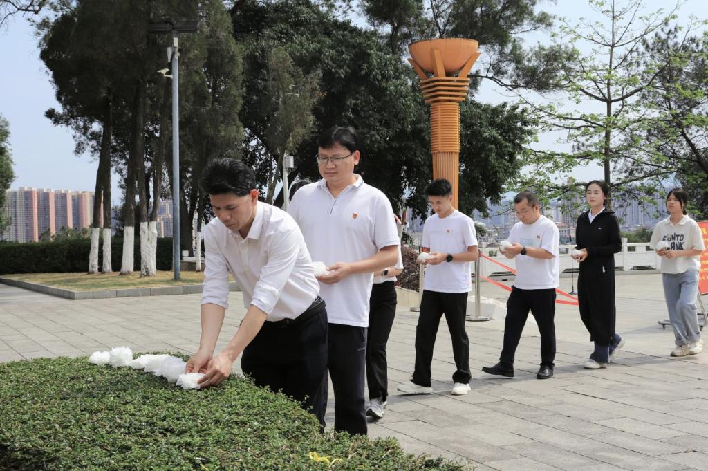 在百色起义纪念碑前,师生列队立,集体默哀致敬。面对鲜红党旗,党员高举右拳重温入党誓词,誓言铿锵。随后,师生依次缓步上前敬献白菊,寄托哀思。学院党委书记李丹现场寄语,要求大家铭记革命先烈为民族独立与人民解放作出的伟大牺牲,从百色起义的壮烈历史中汲取奋进力量,党员要发挥先锋模范作用,团员要坚定向党组织靠拢的信念,将英烈精神深度融入学习与工作,以实际行动传承红色血脉。