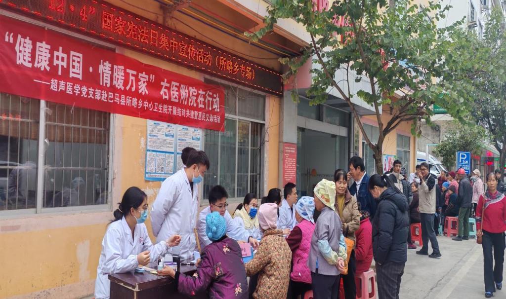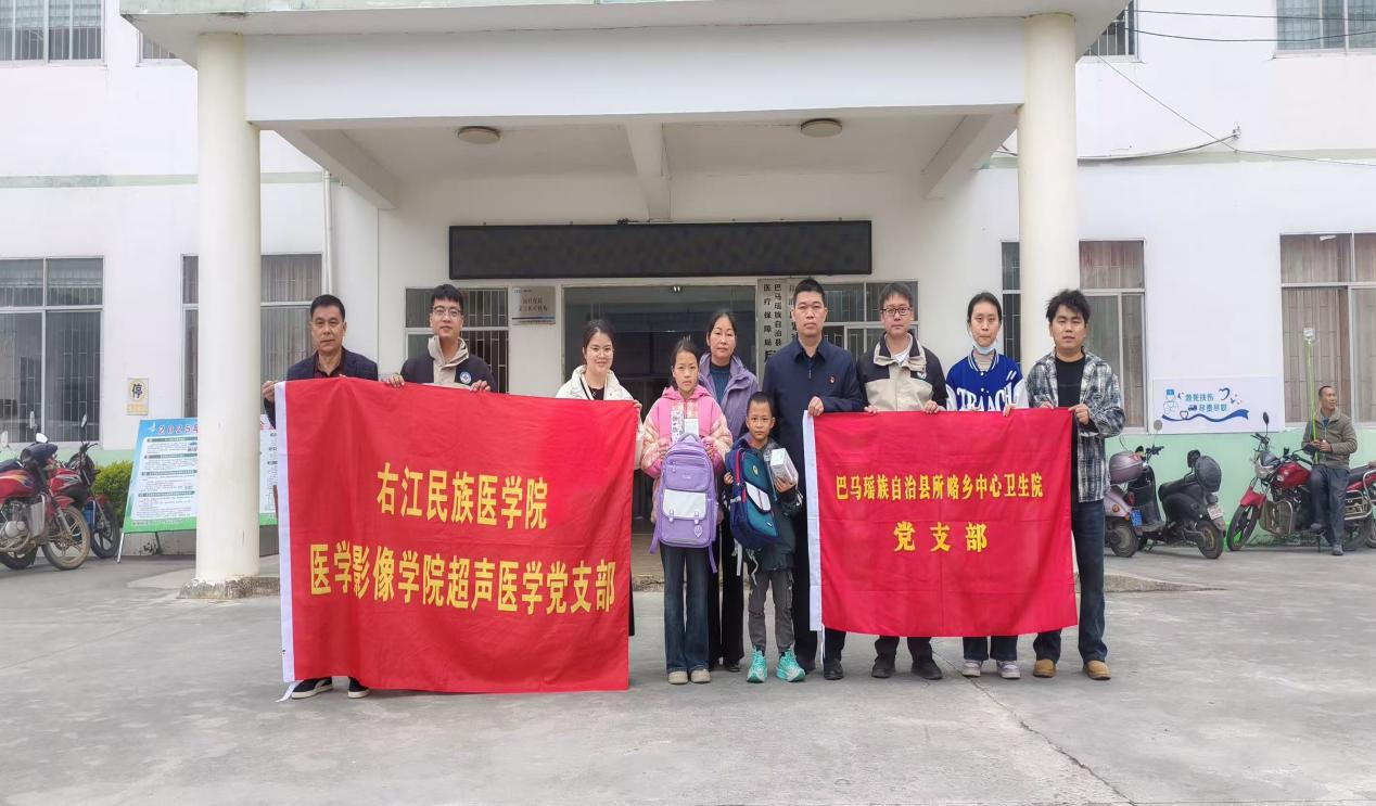 为深入践行新时代党的群众路线,深化党建与医疗业务融合发展,推动优质医疗资源下沉,提升基层群众健康获得感,12月10日,右江民族医学院附属医院外联部副部长岑崇高同志带队,率领超声医学党支部党员及相关医疗专家,赴河池市巴马瑶族自治县所略乡中心卫生院开展“健康中国•情暖万家•右医附院在行动”系列实践活动,涵盖党建交流、惠民义诊、爱心慰问、业务培训四大板块,取得良好社会反响。