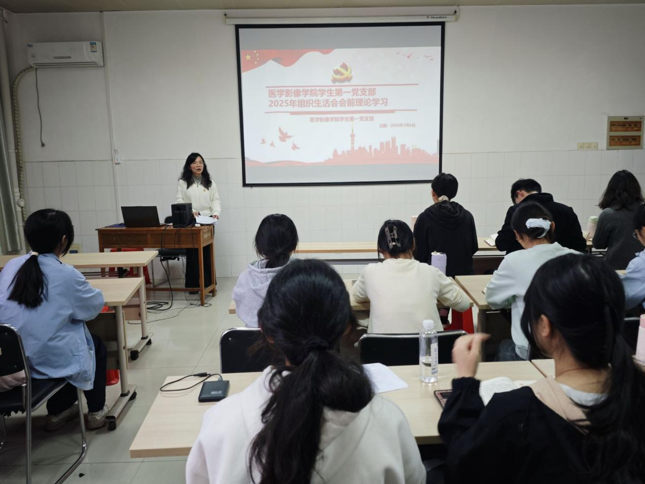 为深入学习贯彻习近平新时代中国特色社会主义思想,严肃党内政治生活,强化党员党性修养,持续推进党支部标准化规范化建设,3月6日下午,医学影像学院学生第一党支部在6栋611教室召开2025年度组织生活会暨民主评议党员大会。会议由党支部书记方祥同志主持,支部全体党员参加,学院党委副书记黄春苗同志以普通党员身份参加会议。