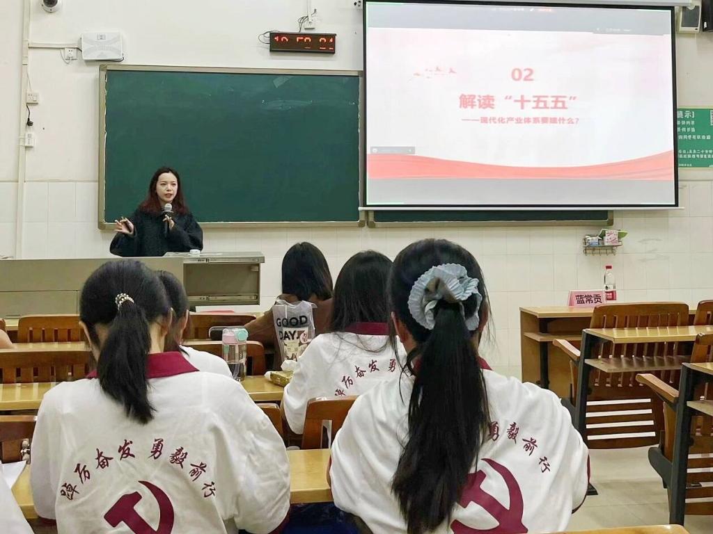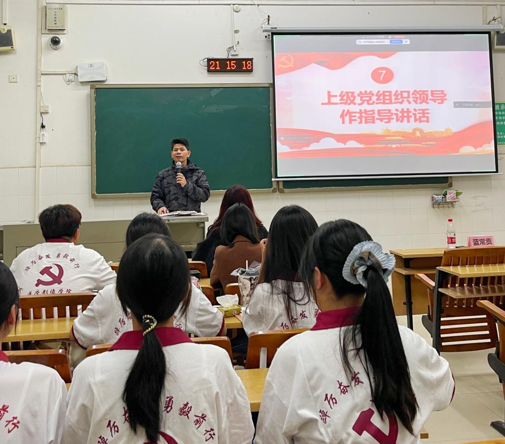 会议第一阶段,支部书记赖倩同志以专题党课形式,引领全体党员深刻认识“十四五”时期国家发展取得的重大成就,准确理解“十五五”时期的战略目标和任务要求。党课紧密结合青年学生党员实际,激励大家要自觉将理论学习成果转化为精进专业技能的实际行动,主动拥抱科技变革浪潮,将个人职业发展与服务国家战略需求紧密结合,努力在“十五五”新征程上书写属于青年党员的奋斗篇章。