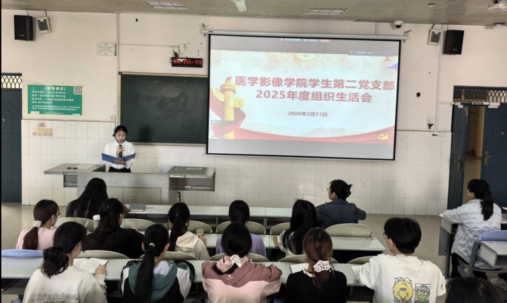 为进一步严肃党内政治生活,增强组织活力,强化党员教育管理,2026年3月11日,医学影像学院学生第二党支部在6栋408教室召开2025年度组织生活会暨民主评议党员大会。学院党委分管领导李丹书记到会指导,支部全体党员参会。